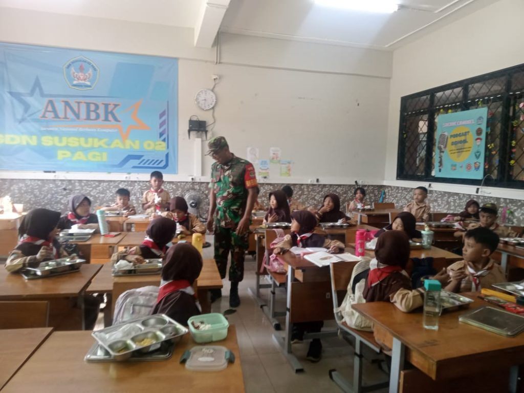 Pendistribusian MBG yang dikawal oleh Babinsa Koramil Pasar Rebo, Ciracas ini berjalan lancar kondusif sampai ke lokasi sekolah , Setiap siswa, balita dan ibu hamil di Posyandu menerima menu makanan bergizi yang terdiri dari nasi rempah, Telur orak Arik bakso, acar sayur, tumis kacang merah dan buah pisang.