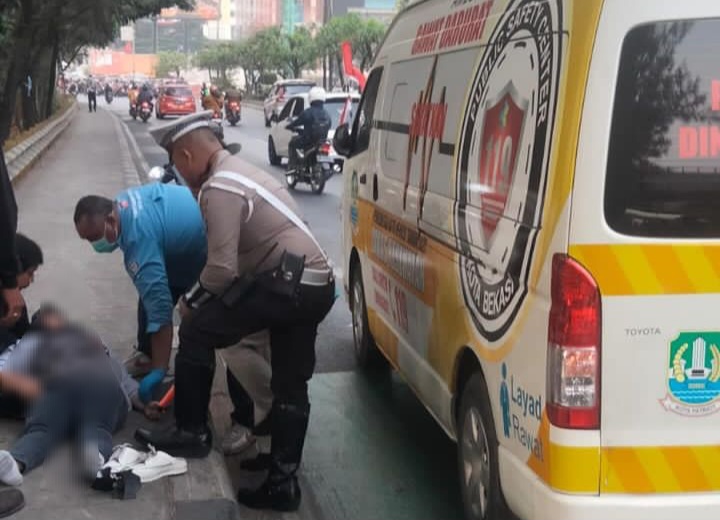 Aksi Cepat Anggota Satlantas Polres Metro Bekasi Kota Selamatkan Korban Laka Lantas di Bekasi Selatan