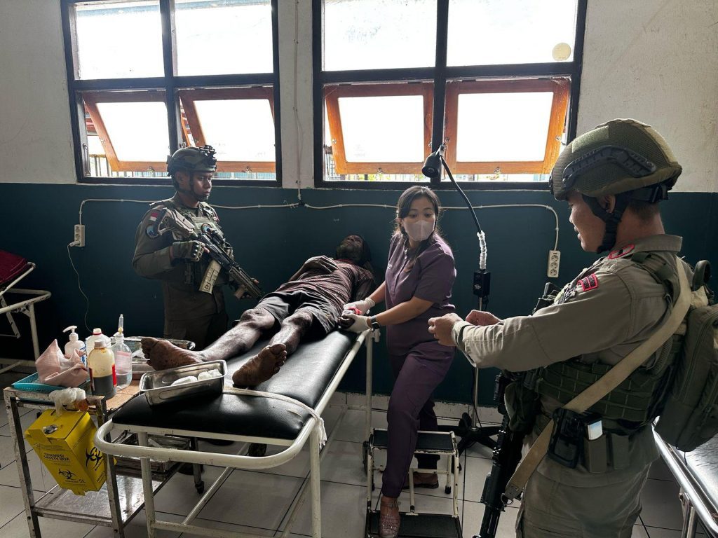 Anggota Satgas, IPDA Deby Taufan, yang saat itu sedang melaksanakan patroli rutin, dengan sigap memberikan pertolongan pertama dan membawa korban ke Puskesmas Mulia untuk mendapatkan perawatan medis.