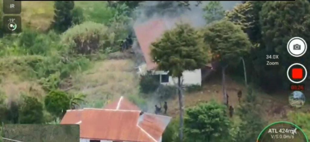 ILAGA, PAPUA TENGAH — Satuan Tugas Operasi Damai Cartenz memastikan Kelompok Kriminal Bersenjata (KKB) bertanggung jawab atas aksi pembakaran sejumlah fasilitas di Distrik Omukia, Kabupaten Puncak, Papua Tengah, Minggu (6/6/2025).