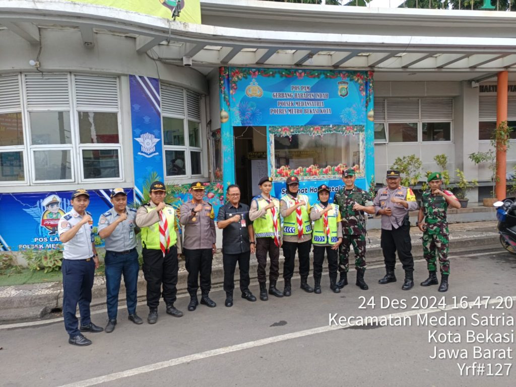 GANTARITV.COM BEKASI – Penyelenggaraan Pengamanan Natal 2024 dan perayaan malam Tahun Baru 2025 di wilayah Polsek Medansatria berlangsung sukses berkat pelaksanaan Operasi Lilin Jaya 2024, sebuah operasi kepolisian rutin yang dilaksanakan setiap tahun. Operasi ini melibatkan berbagai unsur pemerintahan, termasuk Polri, TNI, Pemda, Dishub, Pokdar Kamtibmas, serta pihak-pihak terkait lainnya, untuk menjaga keamanan selama rangkaian kegiatan Natal hingga Tahun Baru. Kegiatan ini berlangsung selama 13 hari, dari 21 Desember 2024 hingga 2 Januari 2025, dengan dibentuknya Pos Pengamanan di depan Gerbang Perumahan Kota Harapan Indah.