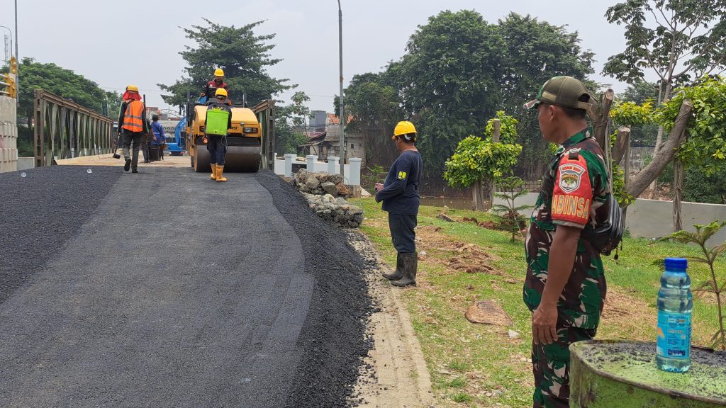 Babinsa Sepanjang Jaya Pantau Finishing Pengaspalan Jembatan Kemang Pratama
