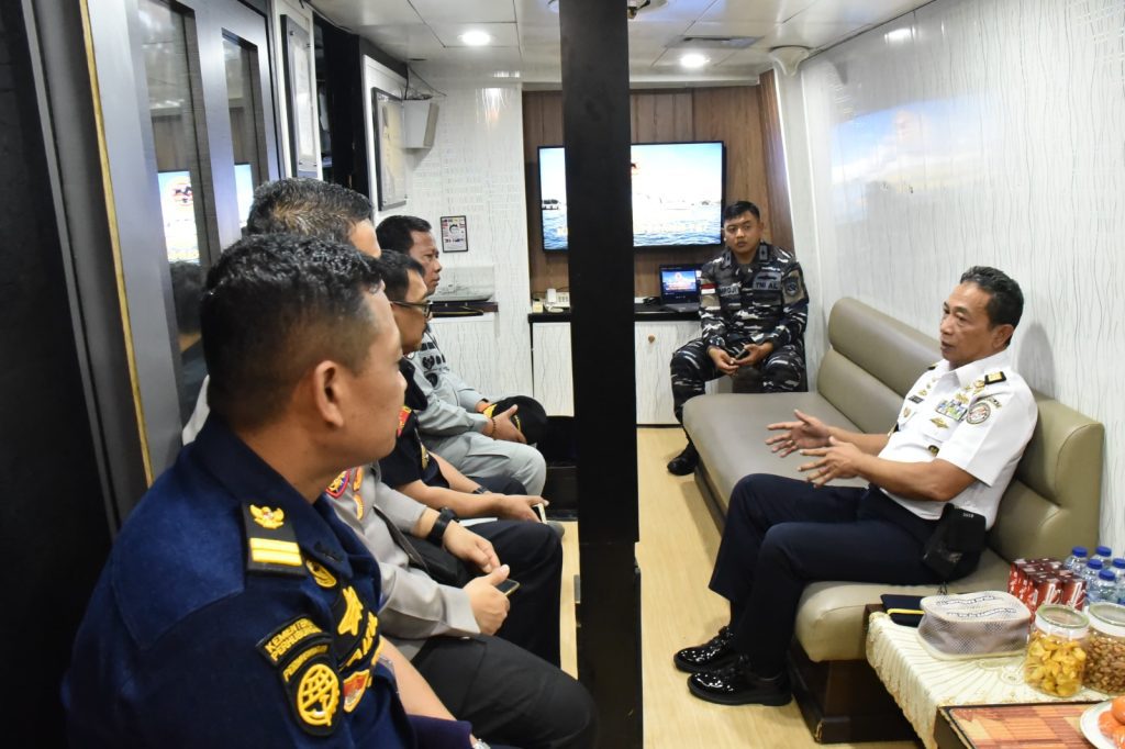 Kegiatan diawali dengan paparan hasil Patroli Bersama yang sudah berlangsung oleh Komandan KRI Pulau Rangsang–727 Mayor Laut (P) Jamroji Dwi Wahono, S.E., M.Tr.AP., dilanjutkan dengan paparan dari perwakilan tiap-tiap Instansi yang tergabung dalam Patroli Bersama. Dalam kegiatan Monitoring dan Evaluasi ini didapatkan beberapa poin penekanan yang menjadi fokus bersama selama Patroli berlangsung, yakni pentingnya berkoordinasi secara aktif guna menghindari adanya pemeriksaan kapal yang berulang. Serta, pentingnya memahami secara mendalam mengenai berbagai pelanggaran yang terjadi di laut.
