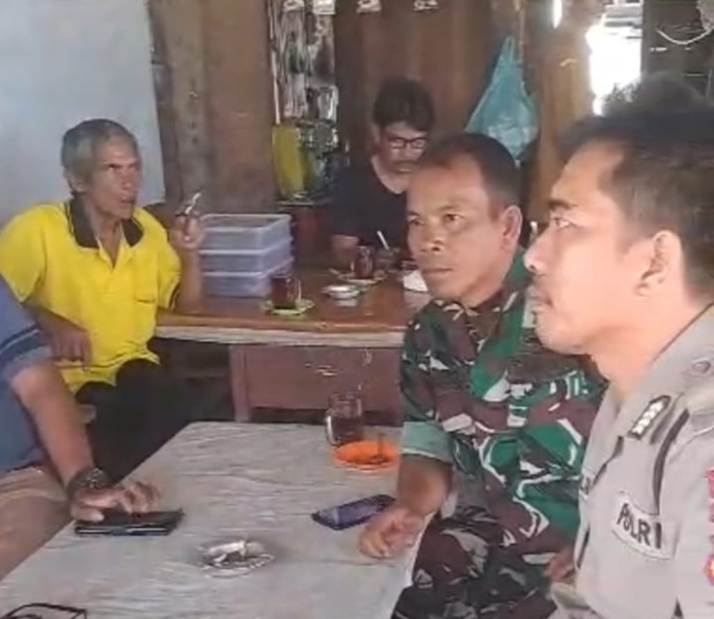 LAGUBOTI – Bhabinkamtibmas Polsek Laguboti Polres Toba Bripka Rony Sinulingga dan Aipda W Butarbutar serta Babinsa melaksanakan kegiatan komunikasi sosial bersama warga desa binaannya dan pedagang di sebuah warung kopi di Kelurahan Pasar Kecamatan Laguboti, Kabupaten Toba Provinsi Sumatera Utara, Selasa (3/6/2025)