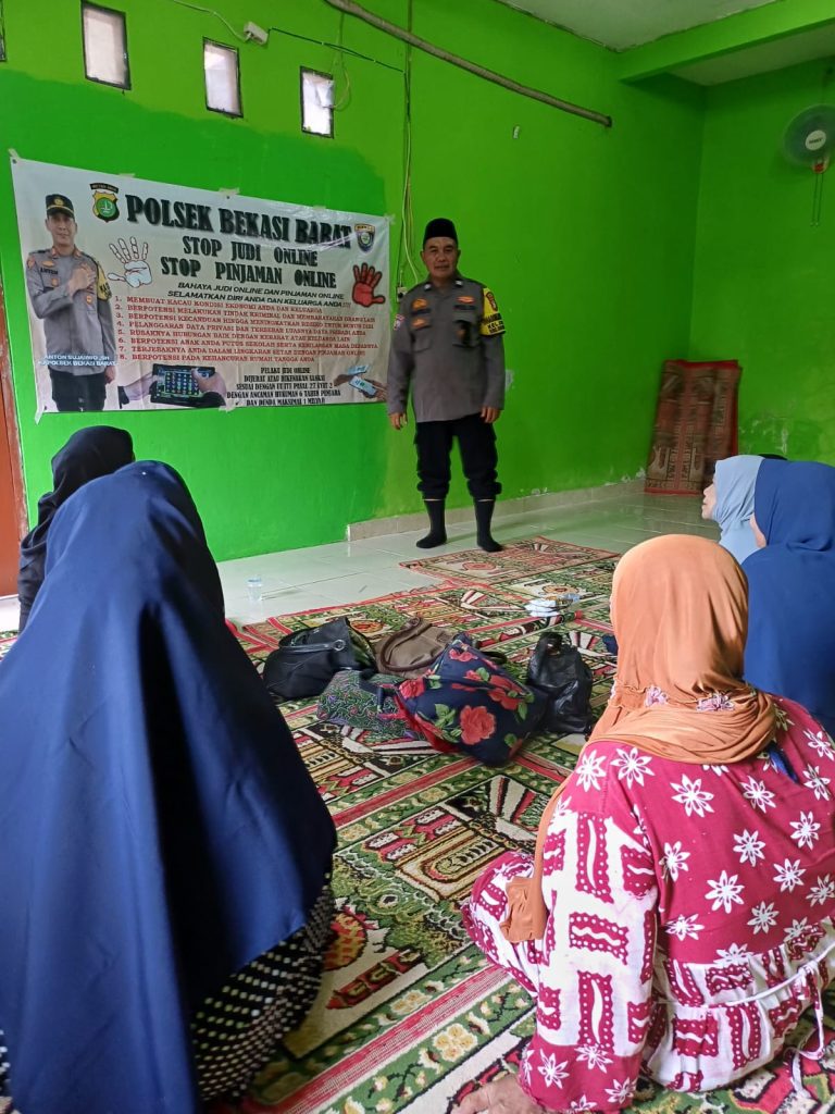 Bhabinkamtibmas Kranji Aiptu Syaripulloh memberikan pembinaan dan penyuluhan kepada Ibu-ibu warga RW.014 kranji yang tergabung dalam Majelis Taklim Alhidayah tentang Judi Online dan Pinjaman Online serta dampak negatif yang ditimbulkan, seperti dampak perekonomian keluarga dan perselisihan rumah tangga dan konsekuensi sanksi hukum buat pelaku judi online.