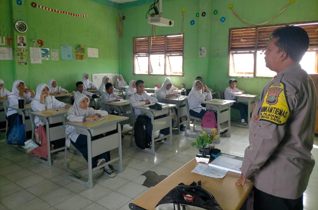 BEKASI – Guna membangun kesadaran dan edukasi sejak dini kepada para pelajar, Bhabinkamtibmas Kelurahan Pejuang, Polsek Medan Satria, melaksanakan kegiatan penyuluhan di SMP Istiqomah. Sosialisasi ini membahas tentang kenakalan remaja, bahaya narkoba, dan judi online (judol) kepada siswa-siswi di Kampung Bungur, Kelurahan Pejuang, Kecamatan Medan Satria, Kota Bekasi.