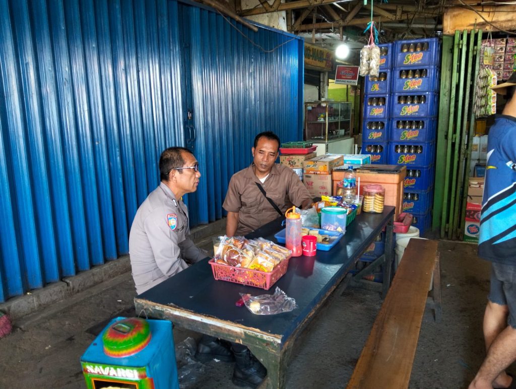BEKASI KOTA – Bhabinkamtibmas Kelurahan Jatiwarna, Polsek Pondok Gede, Bripka Deddy Lesmana Situmorang, melaksanakan patroli dan sambang ke Pasar Tradisional Kecapi, Jalan Pasar Kecapi RT 003/RW 003, Kelurahan Jatiwarna, Kecamatan Pondok Melati, pada Sabtu (2/8/2025).