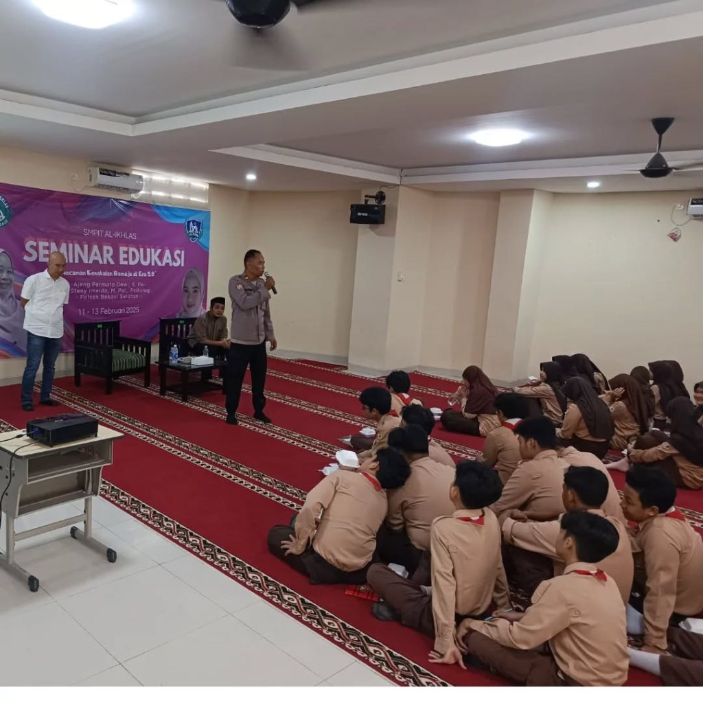 GANTARITV.COM Kota Bekasi – Dalam upaya mencegah penyalahgunaan narkotika di kalangan pelajar, Polsek Bekasi Selatan menggelar seminar edukasi bertajuk “Ancaman Kenakalan Remaja di Era 5.0” di SMPIT Al Ikhlas, Kelurahan Jakamulya, Kecamatan Bekasi Selatan, pada Rabu (12/2/2025).