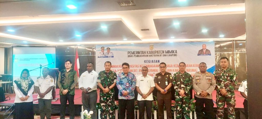 Timika – Perkokoh sinergitas, Dandim 1710/Mimika Letkol M. Slamet Wijaya, S.Sos,.M.Han, M.A menghadiri kegiatan Peningkatan Kapasitas Lembaga Kemasyarakatan Desa/Kelurahan, Lembaga Adat dan Hukum Adat yang digelar oleh Dinas Pemberdayaan Masyarakat dan Kampung (DPMK) Kab. Mimika bertempat di Lt. 5 Ball Room Horizson Diana, Jl. Budi Utomo Distrik Mimika Baru Kab. Mimika, Rabu (02/07/2025).