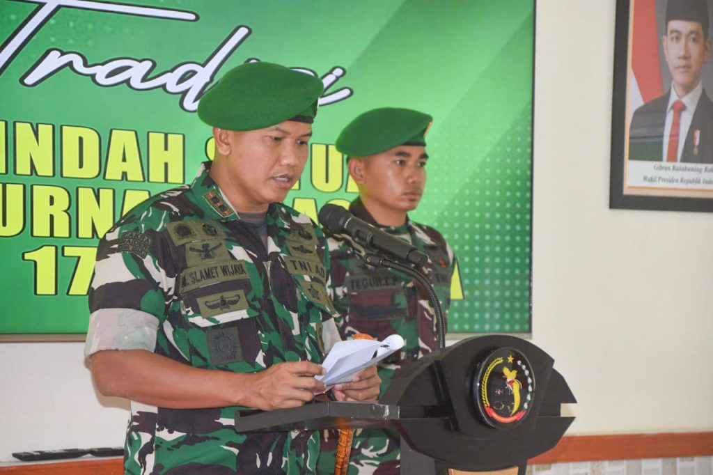 Dalam sambutannya, Letkol Inf M. Slamet Wijaya, S. Sos., M. Han., M.A., menyampaikan bahwa acara tradisi pindah satuan dan purna tugas merupakan bentuk penghargaan terhadap personel Kodim 1710/Mimika yang akan melanjutkan pengabdian di satuan baru dan personel yang telah lulus dalam menyelesaikan pengabdiannya sebagai prajurit TNI.