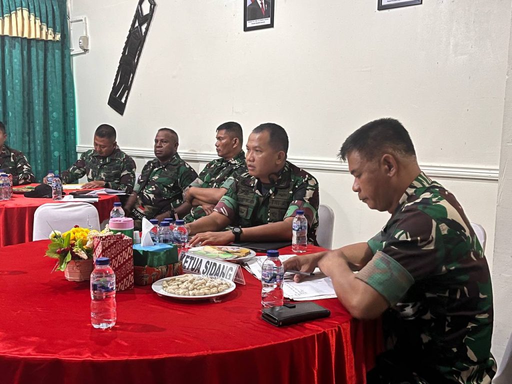 GANTARITV.COM Timika – Bertempat di Ruang Transit Makodim 1710/Mimika Jalan Agimuga Mile 32 Distrik Kuala Kencana, Kab. Mimika, Dandim 1710/Mimika Letkol Inf M. Slamet Wijaya, S.Sos,.M.Han,.M.A. memimpin sidang jabatan Bintara dan Tamtama personel Kodim Triwulan I TA. 2025 yang dihadiri oleh para Danramil, Perwira Staf, Bati Staf dan para Bamin Ramil, Kamis (23/01/2025).