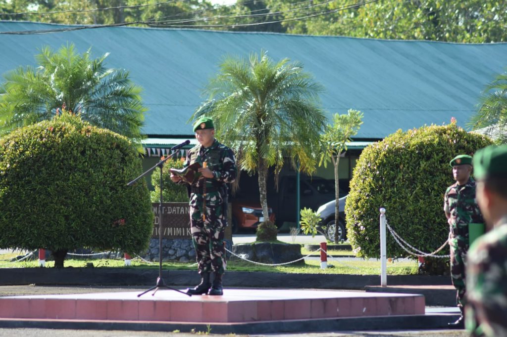 GANTARITV.COM Timika – Kodim 1710/Mimika menggelar Upacara Bendera Tujuh Belasan dengan Irup Dandim 1710/Mimika Letkol Inf M. Slamet Wijaya, S.Sos,.M.Han,.M.A, bertempat di Lapangan Upacara Makodim Jl. Agimuga Mile 32 Distrik Kuala Kencana, Kab. Mimika, Senin (17/02/2025).