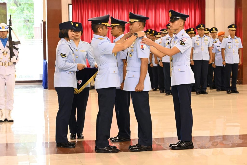 Makassar – Komandan Lanud Sultan Hasanuddin Marsma TNI Arifaini Nur Dwiyanto, M.Han, didampingi Ketua PIA Ardhya Garini Cabang 7/D. ll Lanud Sultan Hasanuddin Ny. Betty Arifaini Nur Dwiyanto menghadiri upacara Serah Terima Jabatan (Sertijab) Danlanud Haluoleo jajaran Komando Operasi Udara (Koopsud) II, bertempat di Gedung Serba Guna Suryadi Suryadarma Markas Komando Operasi Udara (Makoopsud) II, Makassar, Senin (2/6/2025).