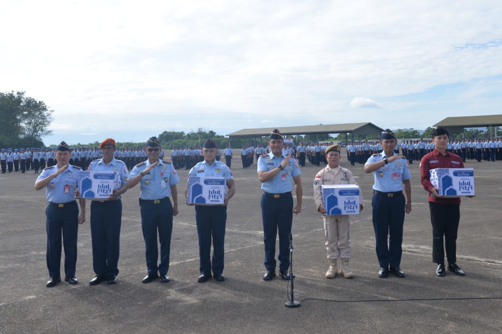 Usai pelaksanaan upacara, Marsma TNI Arifaini Nur Dwiyanto memberikan bingkisan lebaran berupa paket Sembako kepada perwakilan Bintara, Tamtama dan PNS Lanud Sultan Hasanuddin sebagai wujud syukur dan perhatian kepada personil Lanud Sultan Hasanuddin.
