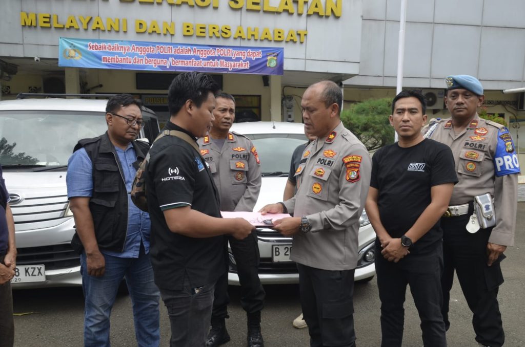 Penyerahan langsung oleh Kapolsek Bekasi Selatan Kompol Dr Dedi Herdiana didampingi Kanit Reskrim AKP Imam Prakoso dan Wakapolsek AKP Parwoto serta jajaran unit Reskrim Polsek Bekasi Selatan.