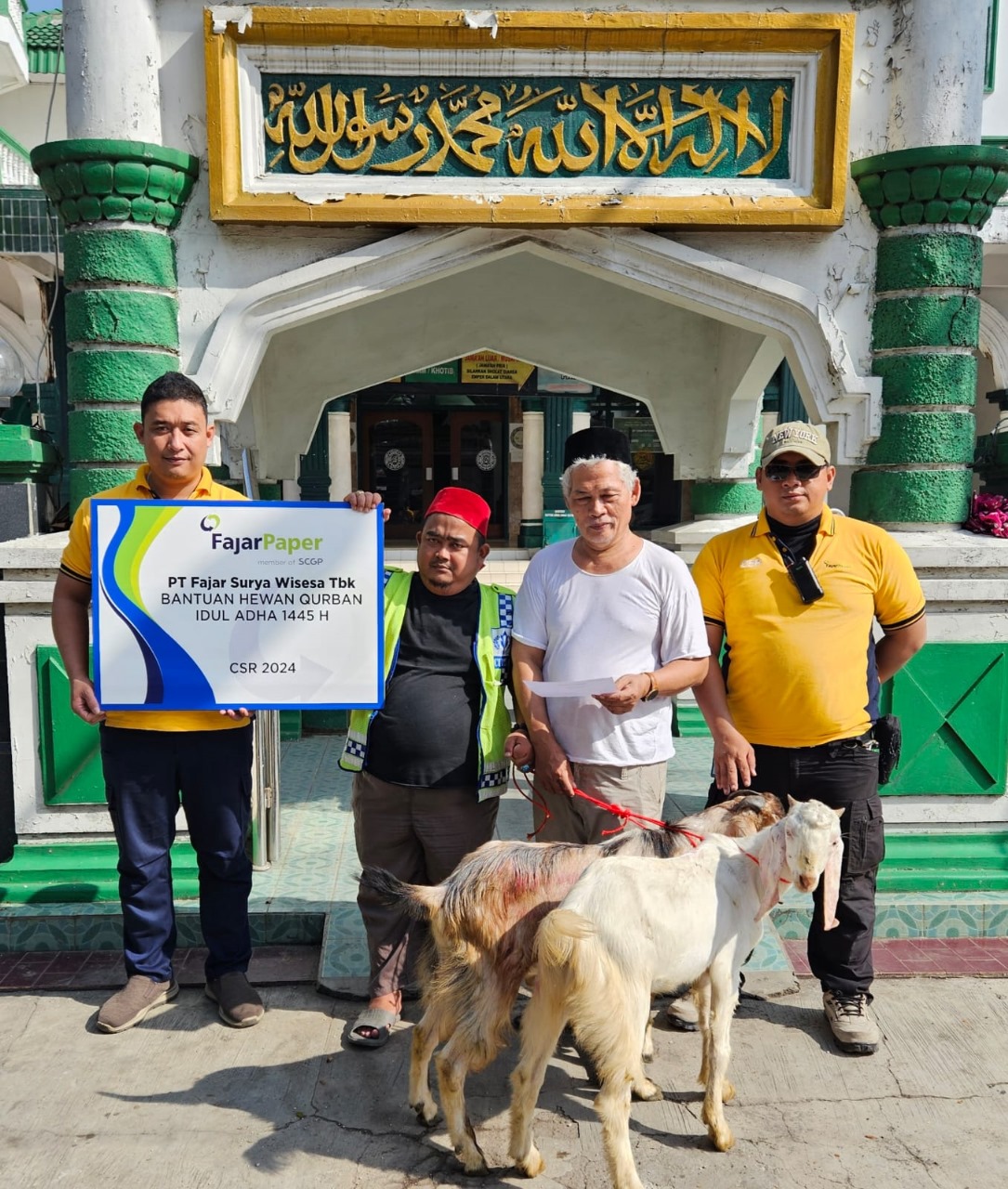 GANTARITV.COM Bekasi, 20 Juni 2024 – Dalam rangka merayakan Idul Adha 1445 H, PT Fajar Surya Wisesa Tbk (FajarPaper), produsen kertas kemasan terkemuka yang merupakan anggota dari SCGP di Indonesia, menunjukkan kepedulian sosialnya dengan membagikan sekitar seratus hewan kurban yang didistribusikan ke berbagai dewan masjid dan musholla di instansi pemerintahan pusat, kabupaten daerah, dan masyarakat sekitar area perusahaan. Kegiatan ini merupakan bagian dari komitmen perusahaan untuk berkontribusi pada kesejahteraan masyarakat.