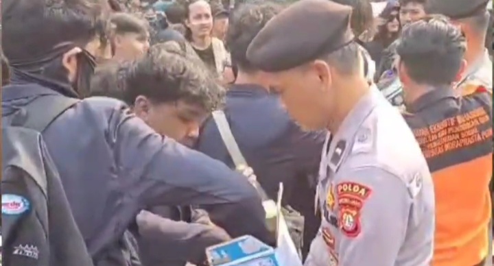 Jakarta – Sebanyak 1.250 Personel Kepolisian diterjunkan untuk mengamankan aksi Unjak Rasa di Gedung MPR/DPR RI. Dalam pengamanan ini seluruh personel ditekankan untuk berlaku humanis kepada massa aksi. Salah satu bentuk aksi humanis yang dilakukan oleh Petugas Kepolisian dengan membagikan air minum sebagai bentuk kepedulian terhadap massa aksi yang tengah menyampaikan pendapat di Jalan Gerbang Pemuda pada Senin sore(25/08/2025)
