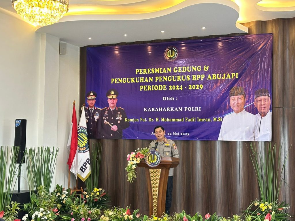 JAKARTA — Kepala Badan Pemelihara Keamanan (Kabaharkam) Polri Komjen Pol Drs. Muhammad Fadil Imran, M.Si. menghadiri langsung peresmian gedung baru sekaligus pengukuhan pengurus Badan Pengurus Pusat (BPP) Abujapi Jakarta, Kamis (22/5/2025). Acara ini digelar di Graha Awaloedin Djamin, Ciganjur, Jakarta Selatan.