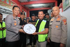 Acara ditutup dengan pemberian Jam Dinding dari Kapolres kepada warga, sebagai simbol waktu dan komitmen bersama untuk menjaga keamanan. Kegiatan Ngopi Kamtibmas ini dilaporkan selesai pada pukul 19.35 WIB dalam situasi aman dan kondusif.