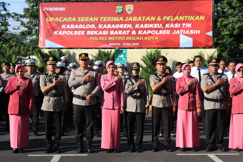 GANTARITV.COM Kota Bekasi – Dalam rangka penyegaran dan penguatan struktur organisasi internal, Polres Metro Bekasi Kota menggelar upacara serah terima jabatan (sertijab) dan pelantikan sejumlah pejabat baru, yang dilangsungkan secara khidmat di Lapangan Polres Metro Bekasi Kota, Jalan Pangeran Jayakarta, Kamis (24/4).