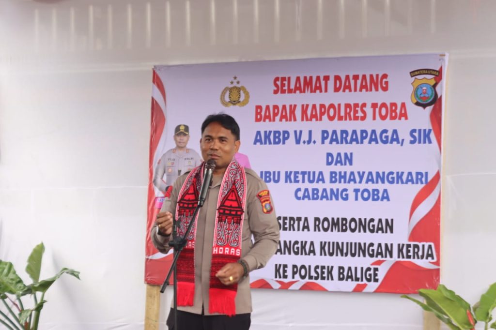 Hal itu disampaikan Kapolres dalam kunjungan kerjanya ke Polsek Balige pada Jumat (23/5/2025). Dalam kegiatan tersebut, Kapolres didampingi Ketua Bhayangkari Cabang Toba Ny Mira V.J Parapaga, para pejabat utama Polres Toba, serta pengurus Bhayangkari.