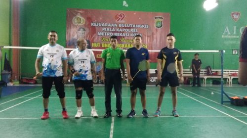 Bekasi — Dalam rangka menyambut Hari Ulang Tahun (HUT) Bhayangkara ke-79, Polres Metro Bekasi Kota menggelar Kejuaraan Bulutangkis Piala Kapolres Metro Bekasi Kota yang berlangsung meriah di GOR Dian Jaya Kayuringin, Kamis (19/6/2025).
