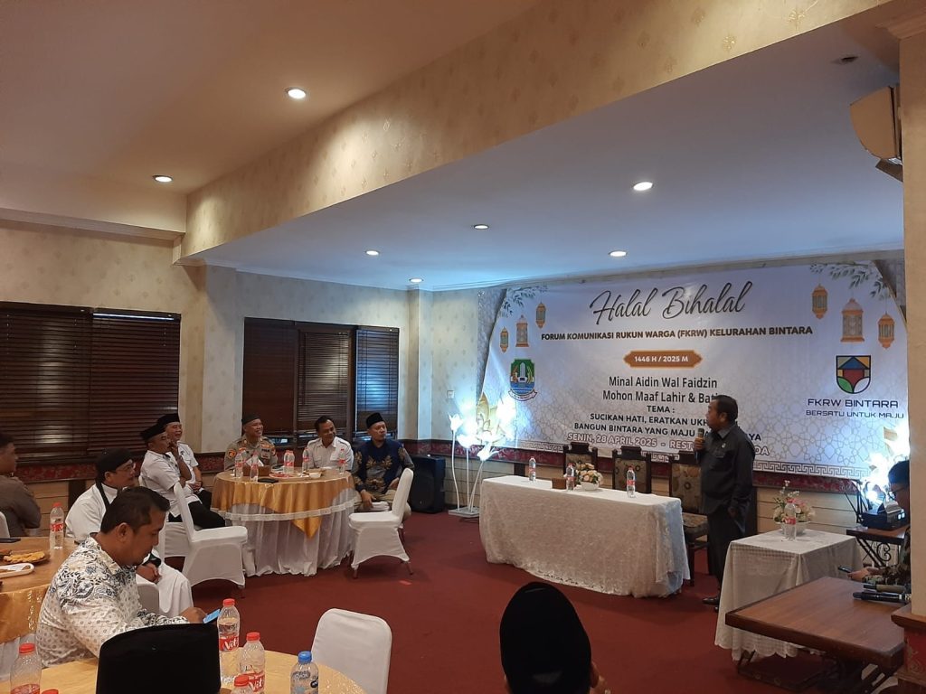 GANTARITV.COM Bekasi Kota — Kapolsek Bekasi Barat, AKP Wahyudi, S.H., M.H., menghadiri kegiatan Halal Bihalal Forum Komunikasi Rukun Warga (FKRW) Kelurahan Bintara yang berlangsung di Aula RM Raja Sunda, Harapan Mulya, Medan Satria, Senin (28/4/2025).
