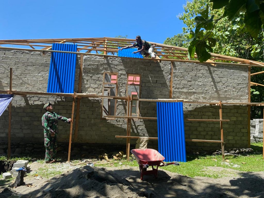 “Saya ikut serta bekerja membantu percepatan pembangunan dengan sasaran pemasangan atap pada RTLH yang sudah kokoh dibangun”, ucap Serka Abdu Fokaaya.
