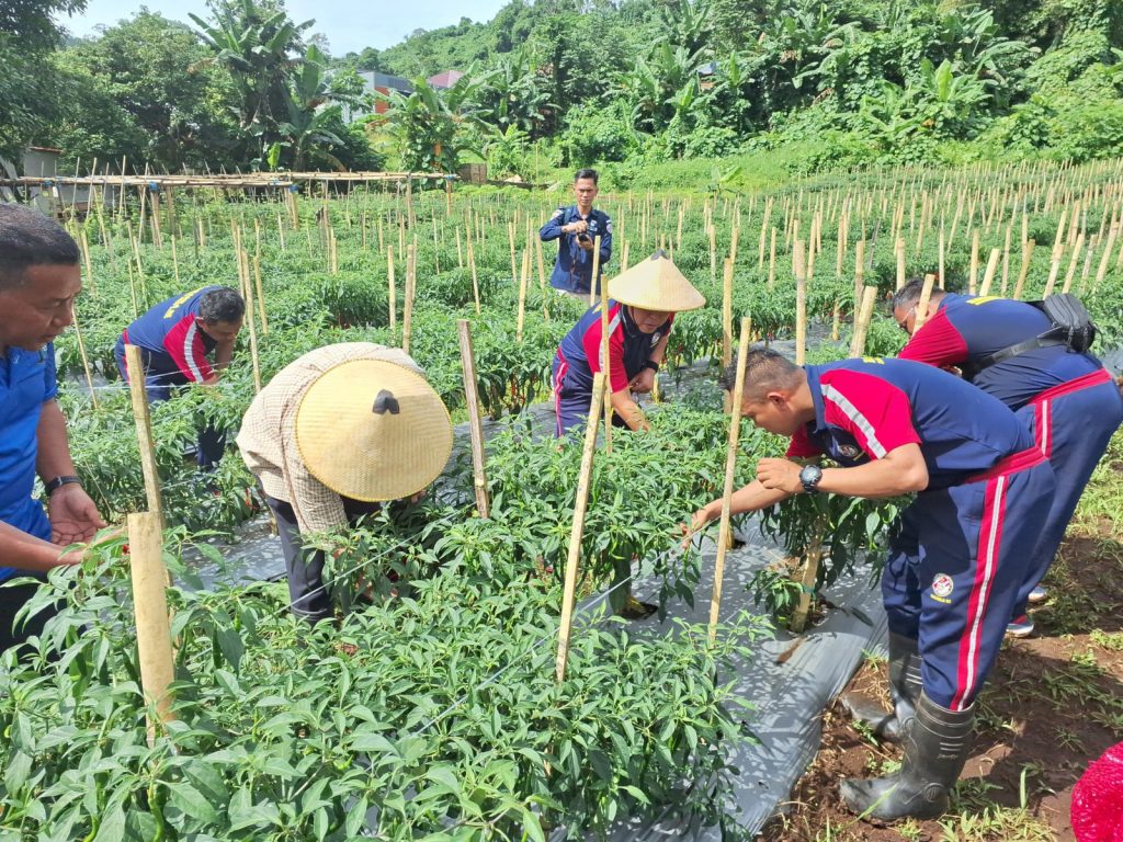 GANTARITV.COM Sulawesi Utara – Kepala Zona Bakamla Tengah Laksma Bakamla Teguh Prasetya, S.T., M.M., CHRMP, memimpin panen perdana cabai dalam rangka Program Ketahanan Pangan di Lahan Mako Baru Zona Bakamla Tengah, Desa Kalasey, Kecamatan Mandolang, Sulawesi Utara, kemarin.