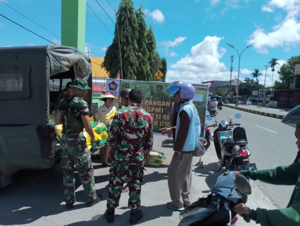 GANTARITV.COM Timika – Kodim 1710/Mimika menggelar Gerakan Pangan Murah di Koramil 1710-02/Timika, Jl. Yos Sudarso, Distrik Mimika Baru, Kabupaten Mimika, Rabu (17/09/2025). Acara ini bertujuan untuk menstabilkan harga komoditas pangan khususnya beras selaku makanan pokok, serta membantu masyarakat mendapatkan bahan pokok dengan harga terjangkau.