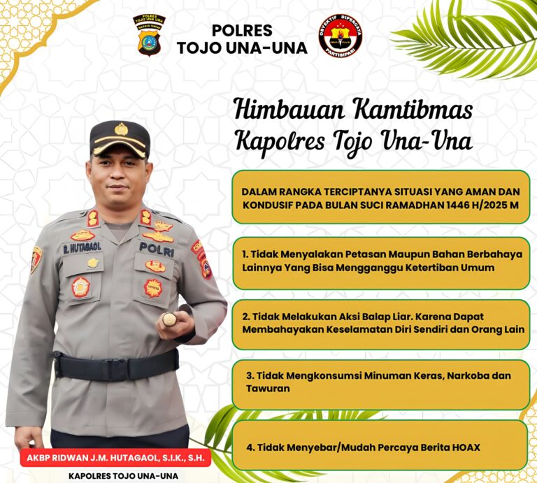 Salah satu pejabat yang dimutasi adalah Kapolres Tojo Una-Una (Touna), AKBP Ridwan Jason Maruli Hutagaol, S.I.K., S.H. yang kini dipercaya mengemban amanah baru sebagai Wakil Direktur Reserse Kriminal Umum (Wadireskrimum) Polda Sumatera Utara. Posisi Kapolres Touna kini diisi oleh AKBP Yanna Djayawidya, S.I.K., M.H., yang sebelumnya menjabat Kasubdit 3 Ditreskrimsus Polda Sulteng.