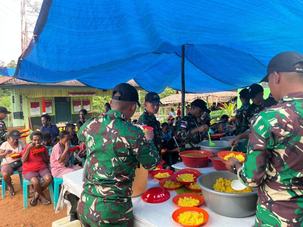 Nasi Kuning, Semangat Merah Putih: TNI dan Warga Gelar Syukuran Rayakan HUT RI di Kampung Kombut