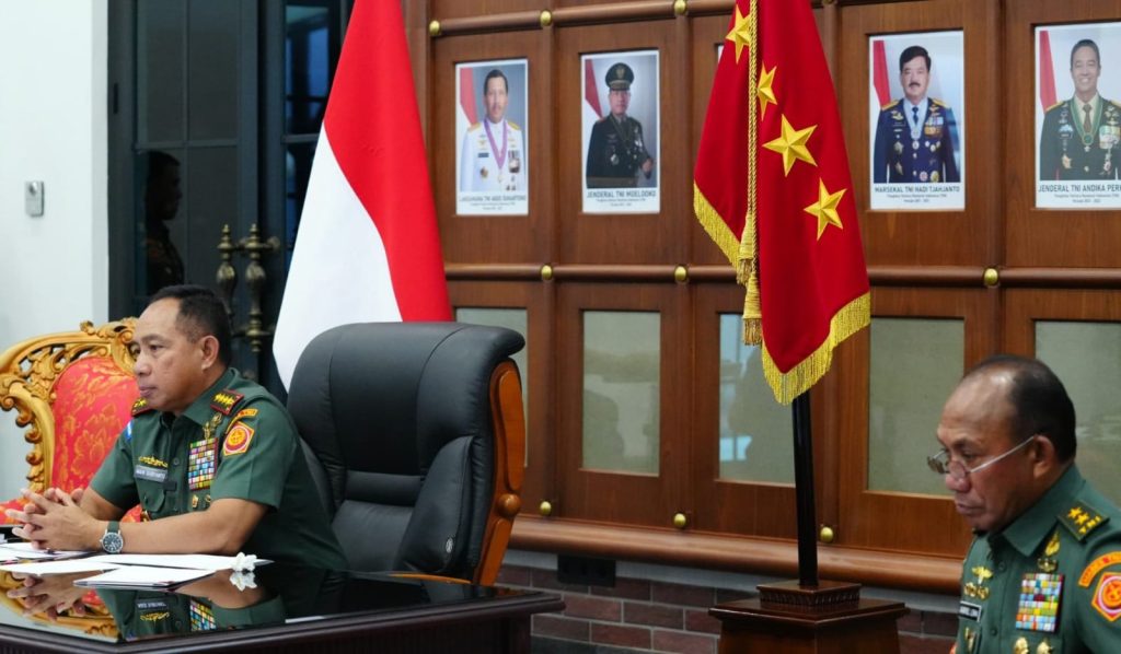 Rapat ini turut dihadiri oleh Wakil Menteri Pertahanan RI, Sekjen Kemhan, Irjen Kemhan, para Asisten Panglima TNI, Kapuspen TNI serta tamu undangan lainnya.