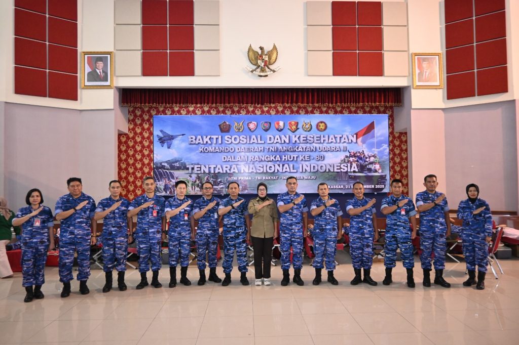 Makassar – Peringati Hari Ulang Tahun (HUT) ke-80 Tentara Nasional Indonesia, personel Lanud Sultan Hasanuddin turut serta dalam kegiatan bakti sosial berupa donor darah yang diselenggarakan di GSG Suryadarma Makodau II, Makassar, Kamis (25/09/2025).