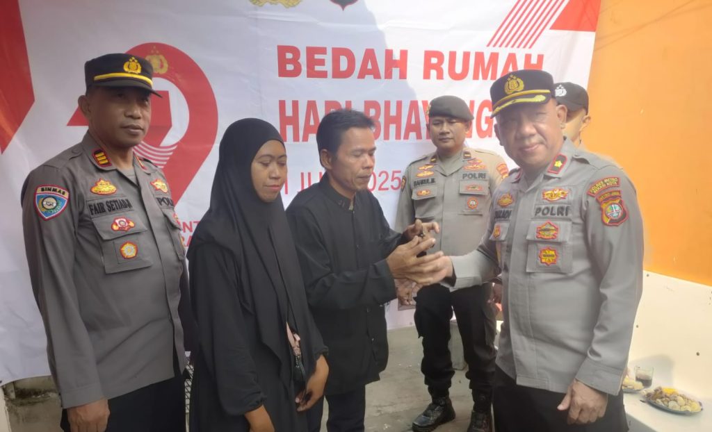 Bekasi Kota– Dalam rangka memperingati HUT Bhayangkara ke-79, Polres Metro Bekasi Kota melaksanakan kegiatan peresmian dan penyerahan kunci dalam Rangka bedah rumah kepada warga.