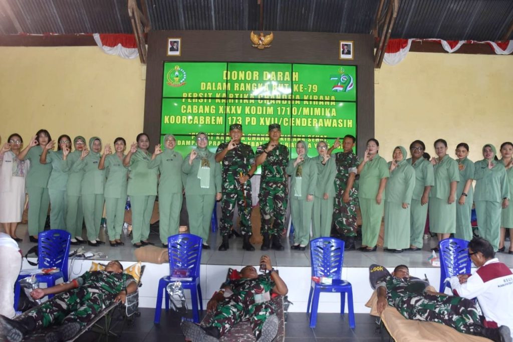 Dandim 1710/Mimika, Letkol Inf M. Slamet Wijaya, S.Sos., M.Han., M.A. memimpin kegiatan tersebut yang didampingi oleh Ketua Persit Kartika Chandra Kirana Cabang XXXV, Ny. Ulfa Slamet Wijaya. Kegiatan donor darah ini bekerjasama dengan RSUD Mimika dan tujuan kegiatan adalah untuk memperingati bakti Persit Kartika Chandra Kirana dalam mendampingi TNI dalam tugasnya serta sebagai sarana kegiatan sosial Persit dalam membantu masyarakat.