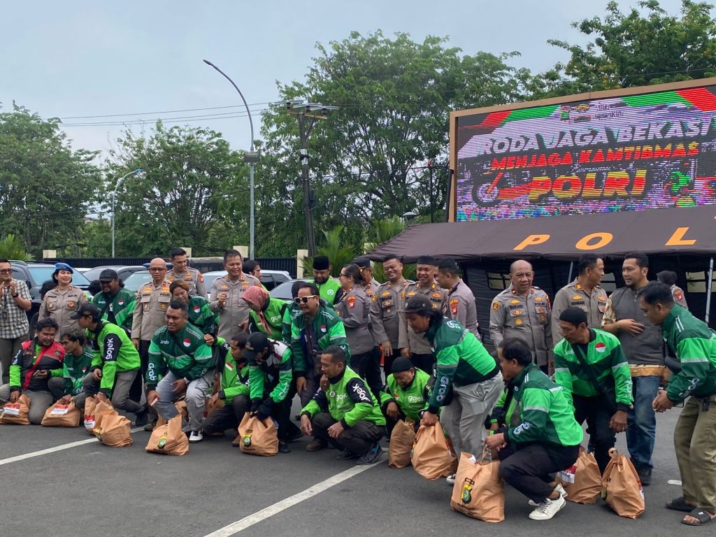 Acara juga diisi dengan penyerahan bantuan sosial berupa paket sembako kepada seluruh pengurus dari komunitas ojol, sebagai bentuk kepedulian Polres terhadap kesejahteraan para driver ojol.