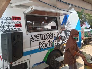 GANTARITV.COM BEKASI – Kehadiran layanan publik di tengah acara adat menjadi daya tarik tersendiri bagi warga Kota Bekasi. Booth pelayanan Samsat Keliling yang hadir dalam acara Festival Adu Bedug dan Dondang di Stadion Mini H. Natrom Nursyamsu, Mustika Jaya, pada Minggu (19/4/2026), mendapat sambutan antusias. Layanan jemput bola ini memungkinkan masyarakat untuk menunaikan kewajiban membayar pajak kendaraan bermotor sambil menikmati kemeriahan pesta rakyat tersebut.