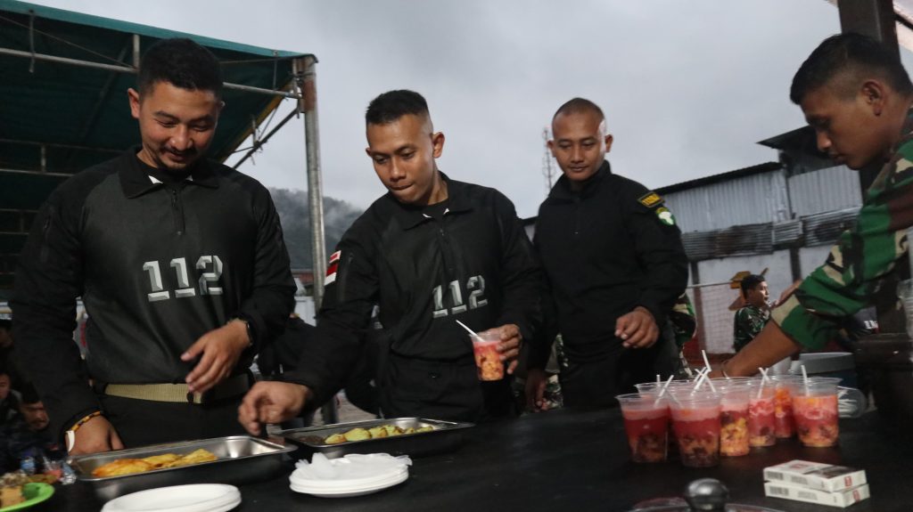 GANTARITV.COM Puncak Jaya – Dalam rangka mempererat tali silaturahmi dan menjalin kebersamaan di bulan Ramadhan, Dansatgas dan Personel Satgas Yonif 112/DJ melaksanakan buka puasa bersama dengan prajurit Yonif 715/Motuliato di Pos Kottis, Purleme, Distrik Mulia Kabupaten Puncak Jaya, Provinsi Papua Tengah, Senin (24/3/2025).