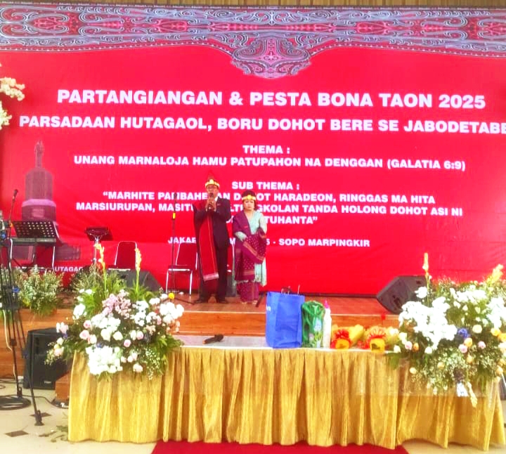 BEKASI – Parsadaan Hutagaol, Boru dohot Bere (PHBB) Se-Jabodetabek menggelar Partangiangan dan Pesta Bona Tahun 2025 sekaligus pengukuhan Pengurus PHBB Pusat masa bakti 2025–2028, pada Minggu (11/5/2025). Acara ini berlangsung di Sopo Marpikkir HKBP, Jl. Raya Damai No. 1, Pulo Gebang, Jakarta Timur.