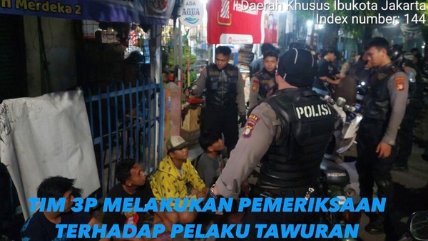 Sekitar pukul 03.15 WIB, petugas menemukan sekelompok pemuda dengan gelagat mencurigakan di Jalan Tanah Merdeka, Ciracas. Setelah dilakukan pemeriksaan, mereka diketahui hendak melakukan tawuran dan langsung diamankan ke Polsek Ciracas.