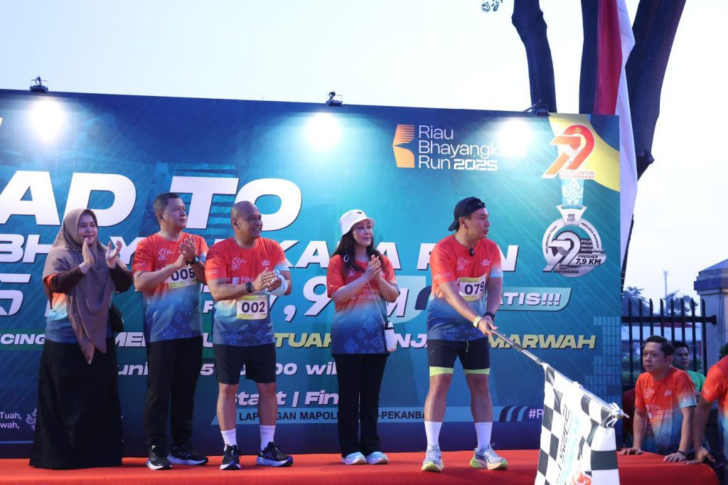 Peserta Road To Bhayangkara Run 7,9 K, dilepas langsung oleh Kapolda Riau Irjen Pol Dr. Herry Heryawan, SIK, MH, M.Hum, didampingi Wakapolda Riau, Brigjen Pol Jossy Kusumo, SH, M.Han, serta diikuti oleh Para Pejabat Utama Polda Riau.