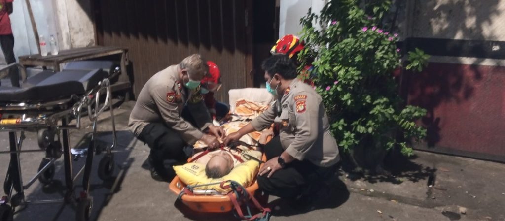“Kami bersama pihak damkar bahu membahu untuk mengevakuasi seorang laki-laki berusia 67 tahun yang dalam keadaan sakit dan harus segera dibawa ke rumah sakit,” ujar Jenal.