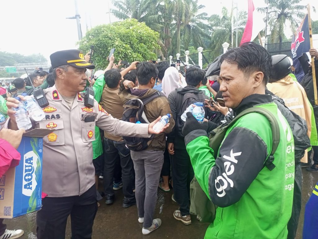 Dalam pengamanan aksi tersebut, anggota Polres Metro Jakarta Pusat terlihat membagikan air mineral dan makanan ringan kepada para peserta unjuk rasa. Pendekatan humanis ini mendapat sambutan positif dari massa yang hadir.