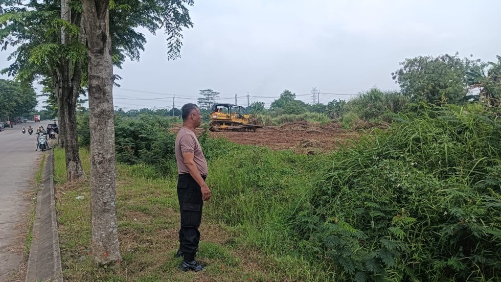 Lahan seluas 4.1 hektar ini dipersiapkan untuk penanaman jagung sebagai bagian dari program ketahanan pangan yang diinisiasi oleh Polres Metro Bekasi Kota. Saat ini, proses pengolahan lahan masih dalam tahap pembersihan rumput menggunakan alat berat buldoser.