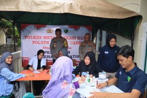 Kegiatan diawali dengan pelayanan kesehatan gratis oleh Tim Dokkes Polrestro Bekasi Kota yang telah siaga di lokasi, tepatnya di Jalan Masjid RT 004/001 No. 91, Jatiwaringin.