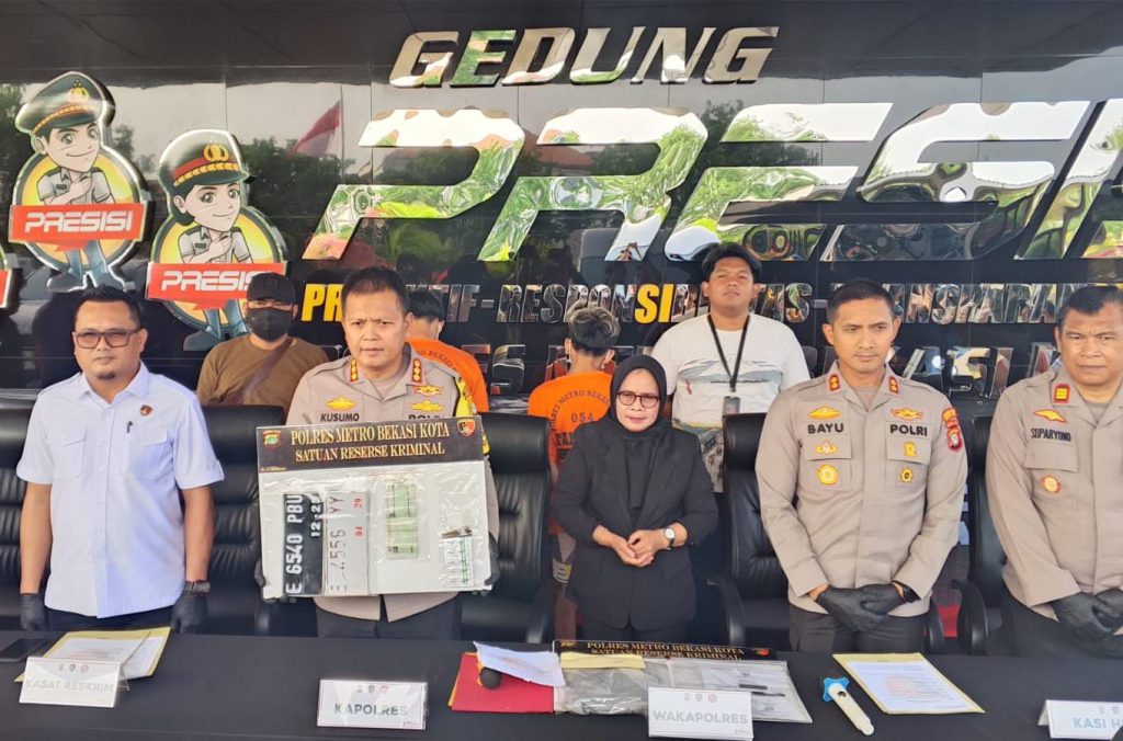 Dalam rilis tersebut, Kapolres didampingi oleh Wakapolres AKBP Bayu Pratama Gubunagi, S.H., S.I.K., M.Si., dan Kasatreskrim Kompol AKBP Braiel Arnold Rondonuwu. Dua pelaku, yang diketahui berinisial ES dan W, berhasil diamankan oleh Satreskrim Polres Metro Bekasi Kota dibantu warga.