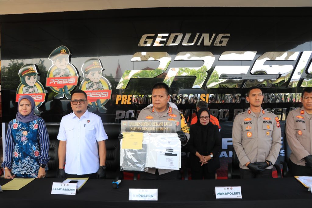 KOTA BEKASI – Polres Metro Bekasi Kota menggelar konferensi pers untuk mengumumkan penangkapan pelaku tindak pidana pornografi terhadap anak di bawah umur. Kasus ini diungkap langsung oleh Kapolres Metro Bekasi Kota, Kombes Pol Kusumo Wahyu Bintoro, S.H., S.I.K., M.H., di halaman Lobi Polres pada Jumat (26/9/2025).