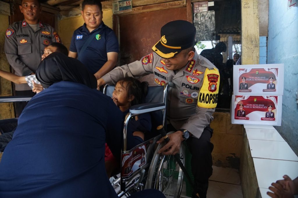 Polres Metro Bekasi Serahkan Kursi Roda untuk Penyandang Disabilitas di Pebayuran