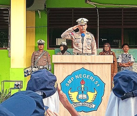 Sementara itu, Wakasat Lantas Polres Metro Bekasi Kota, AKP M. H. Aji, memimpin upacara bendera di SMP 51 Kota Bekasi pada hari yang sama.